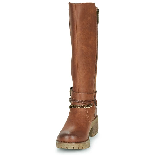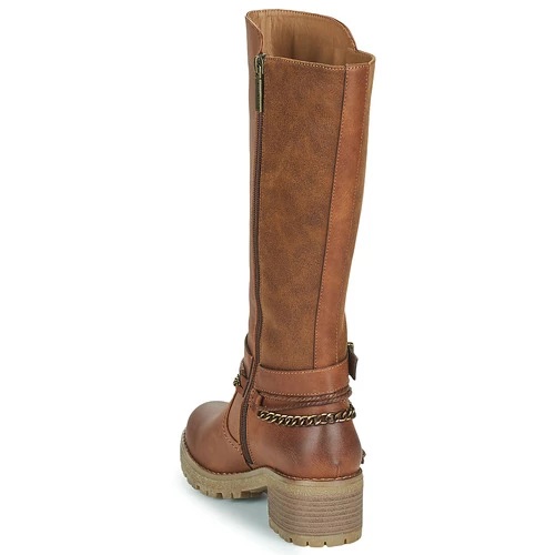 Halte au froid et place à la mode avec cette botte proposée par Refresh. On craque littéralement pour sa tige en synthétique et son coloris marron. Elle renferme une doublure en textile et expose une semelle extérieure en caoutchouc. Montée sur un talon de 6 cm, elle nous fait tutoyer les sommets de la mode. Le bon modèle à avoir dans son shoesing.