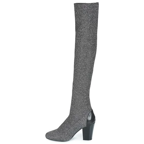 Cette cuissarde imaginée par André va vous faire tourner la tête. On aime sa tige en synthétique et textile, sa doublure en synthétique et sa couleur argentée pour l’assurance qu’elles nous apportent. On dit oui au confort apporté par la semelle en caoutchouc ! Son talon de 9 cm plaira aux fans du genre.